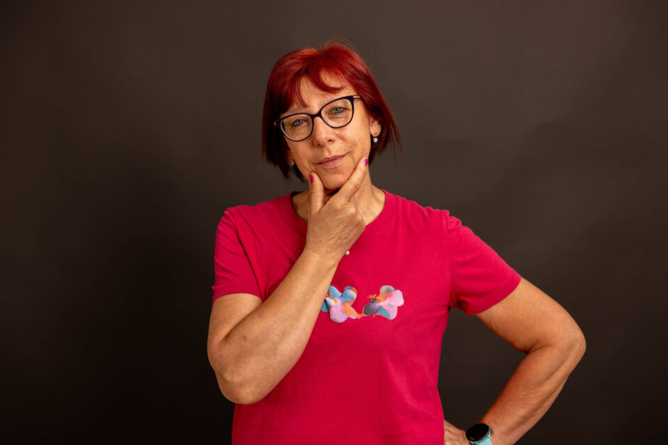 Nella prima foto la foto era molto spenta di luci allora le ho alzate per far rendere la pelle più accesa e quindi anche la maglietta rosa è stata molto più accesa
